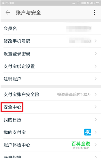 进入到账户与安全界面后找到并点击【安全中心】选项。