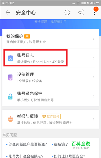 在安全中心中就可以看到【登陆日志】了,我们想要查看的登陆记录就在这里,点击打开这个选项。