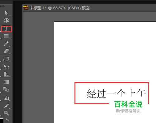 启动AI软件,并输入想要输入的文字并选中改文字,效果如下图所示: