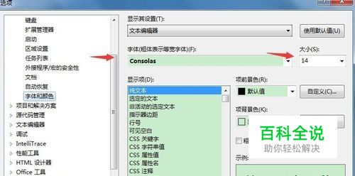 Visual Studio 更改字体和背景色