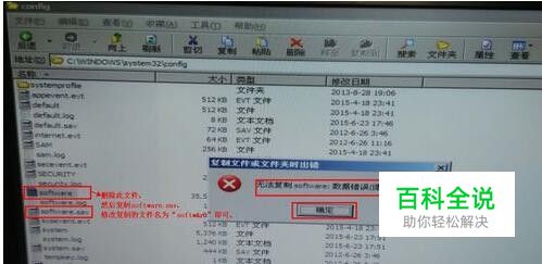 在C盘中找到Software文件,我的电脑路径为:C:\WINDOWS\system32\config,你可以复制一下,会弹出一个错误(这就是你电脑不断重启的原因),不用管,删除Software文件,然后复制Software文件,将复制的Software.sav文件重命名为Software(没有后缀名)。