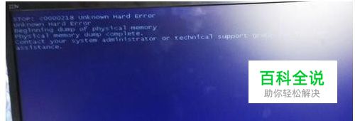 公司同事的电脑(台式机,XP系统)开不了机,不断地重启,找到了我,观察后发现有个蓝屏一闪而过,用相机抓拍了下来,蓝屏显示STOP:C0000218 unknown hard error ……