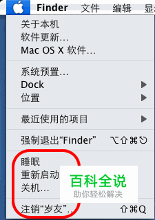 软启动: 在系统中的苹果菜单下有几个相关命令:关机、重新启动和注销,执行这几个命令通常称为“软启动“。一般应用程序运行中出现的随机问题通常都可以通过软启动来排除。