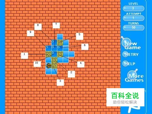 最后,移动到2号箱子下方,将2号箱子推动到10号目标位置,恭喜过关。