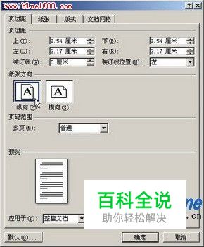 第2步,在打开的“页面设置”对话框中切换到“页边距”选项卡,然后在“纸张方向”区域选择“横向”或“纵向”类型的纸张,并单击“确定”按钮,如图所示。