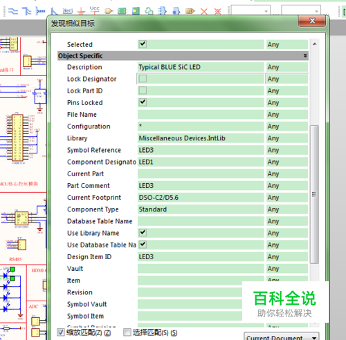 Object Specific选项卡下Symbol Reference后选择same,点击OK。Altium会高亮显示所有LED,而其他的元件则是灰度显示,此时界面如下所示