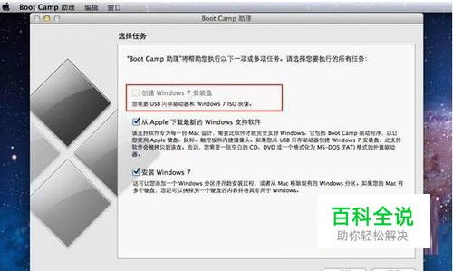 使用修改好的Info.plist将源文件替换,运行Boot Camp,此时“创建Windows 7安装盘”选项可选,破解成功!勾选“从Apple下载最新的Windows支持软件”,在制作过程中会下载相应驱动程序,也会消耗不少时间。如果您有驱动程序,那么这步可以跳过。