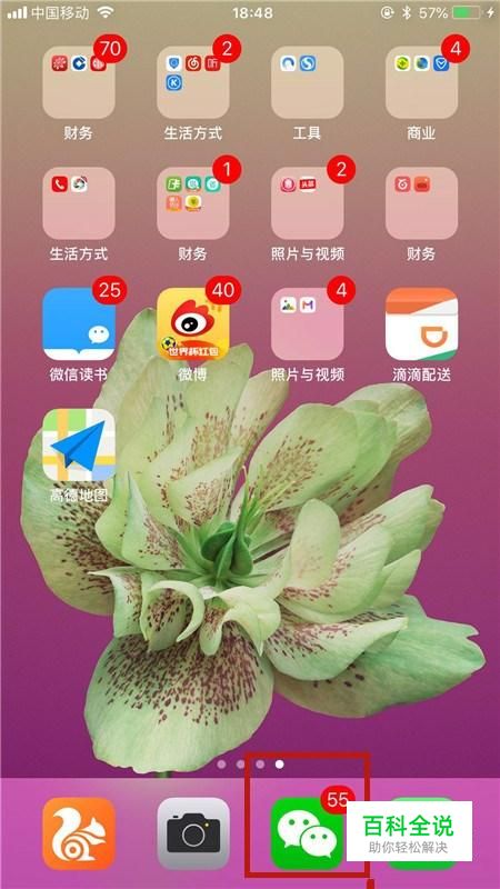 首先在我们的手机桌面上找到微信并点击它,如下图所示。