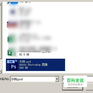 在这里点击“打开”,在弹出的对话框中找到并点选需要转换成JPG的PSD文件。