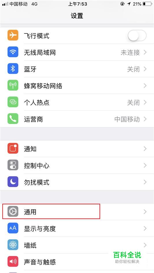 在设置页面,找到如图所示的“通用”选项,点击进入。