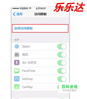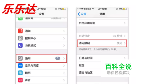 在“设置”应用中,“通用”选项页面,点击进入“访问限制”