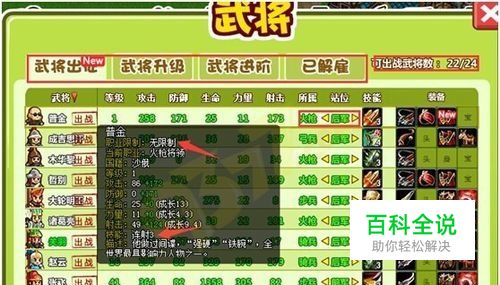 4 武将出战、升级 4.1 初始默认最多可上场4名武将 4.2 升级可增加最大上场武将数 4.3 点击选择派遣上场的武将,会显示“出战” 4.4 可选择武将上场后的站位,前军、中军、后军 4.5 在武将界面下点击按钮升级武将 4.6 升级消耗金币