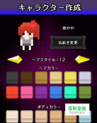 进入游戏会先要求玩家起个角色名,然后就进入创建角色的界面,非常可爱的像素风,虽然全部都是点阵组成的画面,但是细节还是制作得很用心的,可以选择人物造型(有男女之分,发型也有区别),然后是发色和肤色,再点击确定就完成了。虽然自定义的项目不多,但是对这样的像素画面来说已经很难得了。
