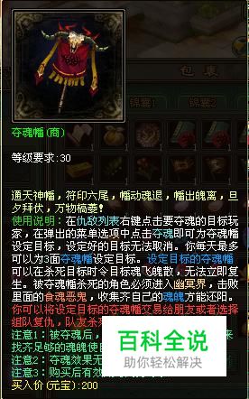 打开元宝商城,从杂货区购买夺魂幡。 注意:夺魂幡的有效使用期限是3天。