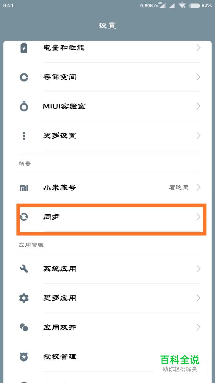 首先,在桌面主页面打开小米手机的系统设置,然后一直向下翻,找到“同步”选项,点进去。