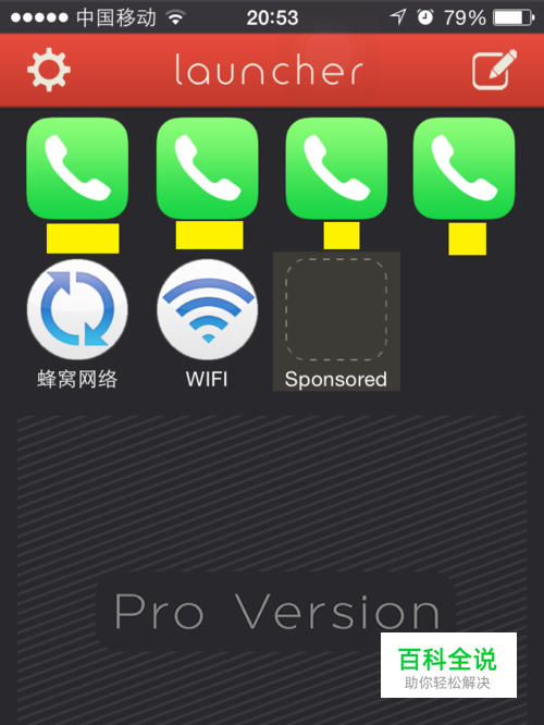 打开launcher软件,进入编辑状态。 点击第一幅图中右上角的编辑图标(有一支笔),就可以看到下面第二幅图的情况(下图中是我随便添加的几个常用联系人、移动网络和WIFI)。