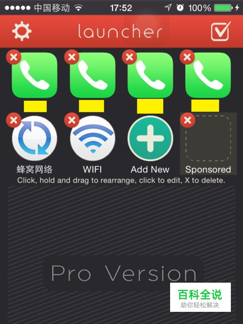 下拉通知中心,点编辑,将launcher 添加到通知中心里即可,这时候是不是在通知中心已经出现你刚才设置的常用联系人和蜂窝网络,点击试一下,呵呵。