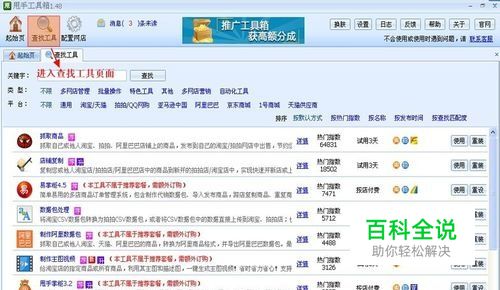 进入到起始页后,用到顶部的查找工具找到【抓取京东工具】,点击后面的立即使用,会进入抓取京东工具中;