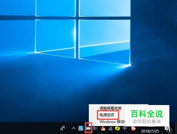 首先,我们右击电脑右下角的电池标识,弹出的界面,我们点击电源选项;