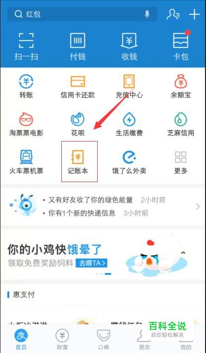 进入到个人支付宝首页之后,点击记账本;