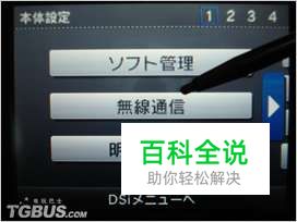 在确保满足以上两条基础条件后,你就可以打开DSi开始上网的准备了。 开机后看见菜单选择本机设置图在设置的第一页选择“无线通信”栏进入后选择“ON”后按“确定”这样DSi的无线通信功能就开启了。