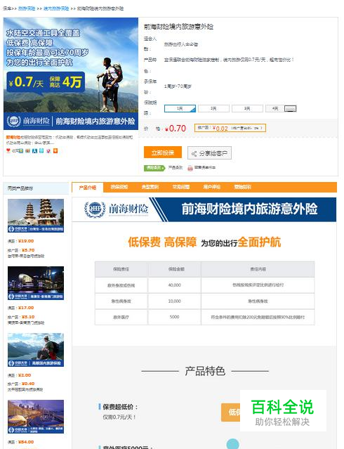 选择一款自己中意的产品,例如“旅游险”,右边会显示推广比例及推广费用