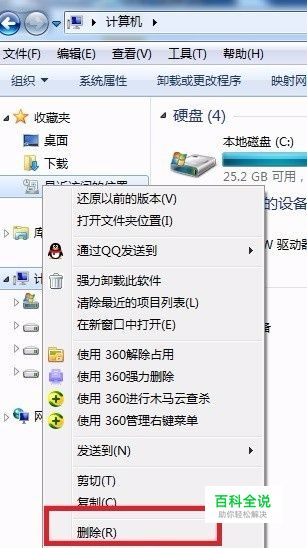 现在,我们右键“最近访问的位置”图标,将其删除。