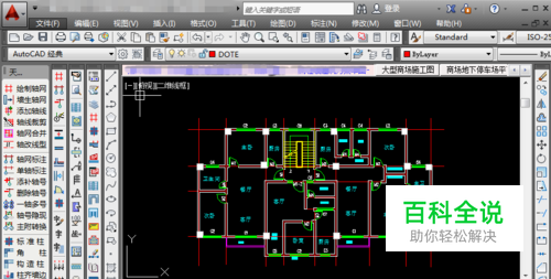 这里以cad2014和天正2014为例,打开一张绘制好的平面工程图纸,由于想生成平立剖图之前进行修改,查看三维建筑样式。