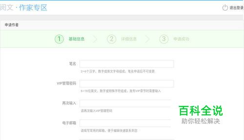 之后出现如图申请作者的页面,填写申请信息。笔名一定要自己想好了再填哦。