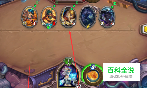 步骤四:我们使用法术卡牌背叛作用到厄运鼹鼠上,再使用剧毒箭矢作用到咆哮魔身上。