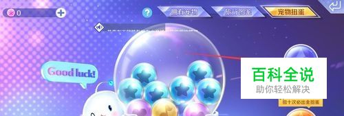 打开抽宠物的界面,首先观察扭蛋机里面三个颜色的扭蛋分别有几个,如下图,一看就是:7蓝、2紫、1金,如果连抽10出来的10个扭蛋也会是这几个颜色,都知道连抽10个中的几率大,宠物也都是从紫色和金色扭蛋里出来的,现在这个不适合连抽,我们需要卡蛋,让紫色和金色出来的多点,先扭一次,改变扭蛋机里面的扭蛋。