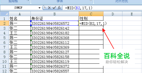 使用mid函数取出第17位数字,奇数为男,偶数为女。