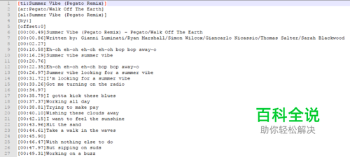 先打开下载到的歌词,查看歌词是否被加密,如没有加密格式就如图
