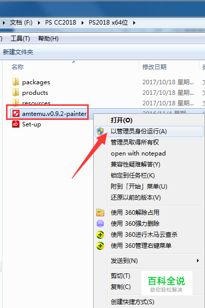接着 鼠标右击amtemu.v0.9.2-painter,选择以管理员的身份运行。