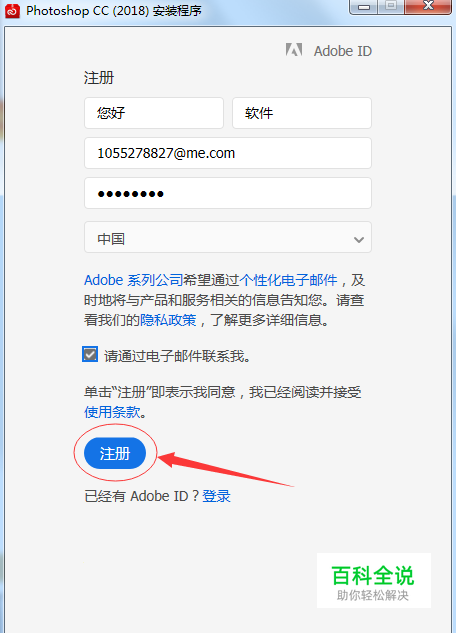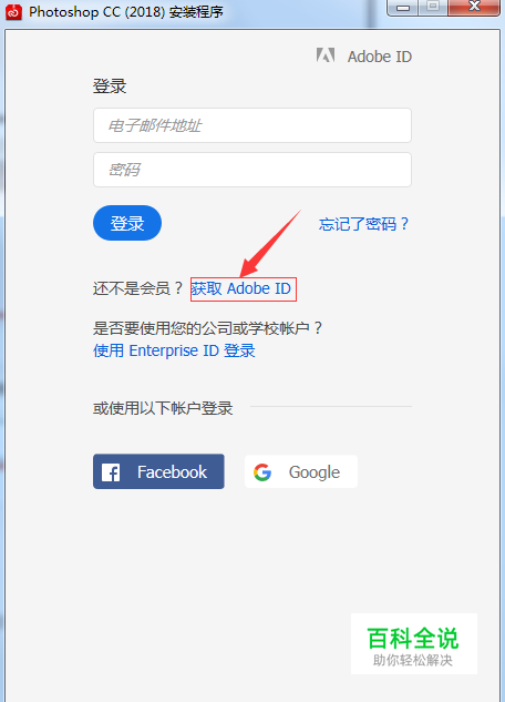 第一次使用,安装的时候我们需要注册一个账号,点击“获取Adobe ID“已经有账号的用户可以直接登陆。