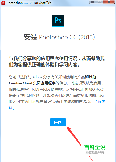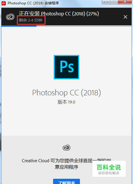 加载完成后会自动打开软件, 如果不自动打开可以从菜单栏里面找到Ps cc2018图标打开,接着我们点击右上方关闭按钮退出软件。