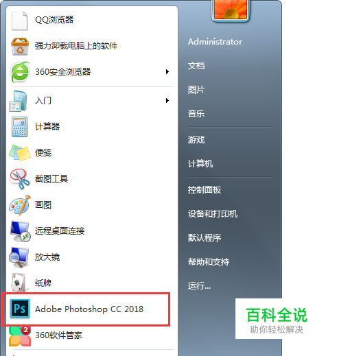 可以从开始菜单栏里面找到Ps cc2018图标打开
