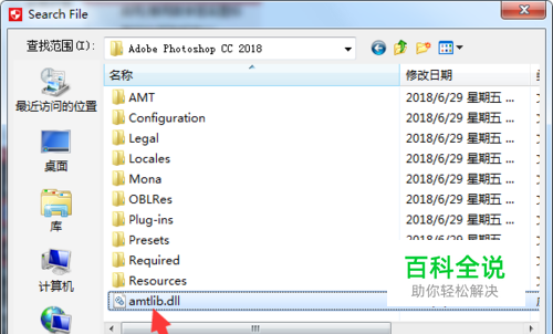 选中后点击注册机右下角的Install,然后会跳出文件资源管理器让你找一个dll文件。如果是默认路径就打开C:\Program Files\Adobe\Adobe Photoshop CC 2018,找到后选择软件根目录下的amtlib.dll ,双击打开。
