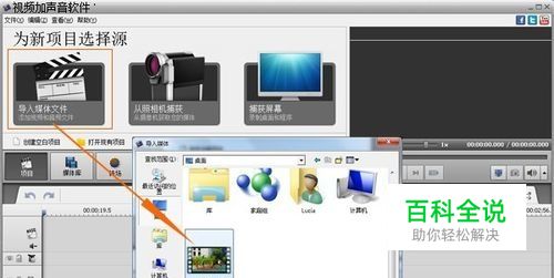 且看怎么给一段自拍视频录上解说声音的。这里分享的这个视频加声音的软件是免安装绿色版的,直接按说明打开软件即可,如下图,初始界面的“项目”栏上,点击“导入媒体文件”按钮,浏览本地并将需要编辑的视频文件“打开”导入。