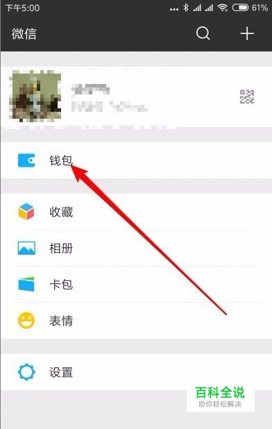 在手机上打开微信,然后切换到微信的“我”页面,在打开的我页面中点击“钱包”菜单项。