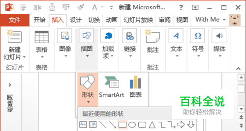 【形状渐变】在菜单中,找到“ 插入”,在“ 插图”栏目下点击" 形状",形状随意,这里选择矩形作为演示。
