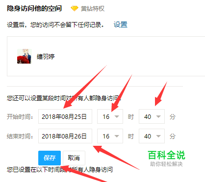 修改完成之后点击【保存】,现在您会在设置的时间段对所有人隐身访问。