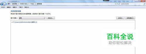 通过设置桌面背景的方法检测:右键点击桌面--个性化--桌面背景,打开桌面背景对话框。
