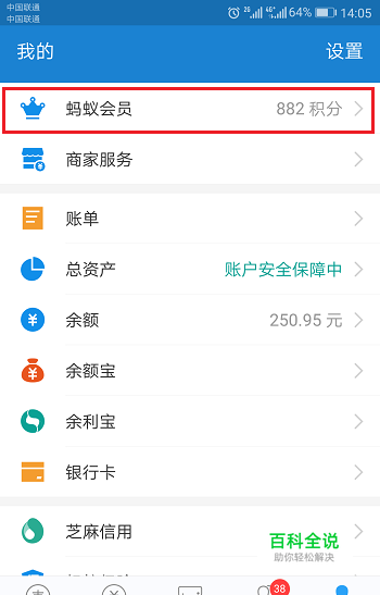 第一步我们首先需要知道支付宝备用金是一个0息0手续费的小额借款产品,每次最多取500元,一个月最多取2次,需要会员等级到达黄金会员以上,芝麻信用分650分以上才可以开通,点击蚂蚁会员,如下图所示: