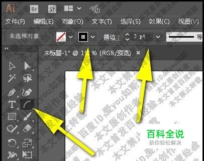 新建画板后,选择弧形工具,描边色为黑色,无填充色,描边大小为3pt