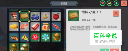“道具”的页面,就会显示可以制造多少个小麦饲料,点击小麦饲料。