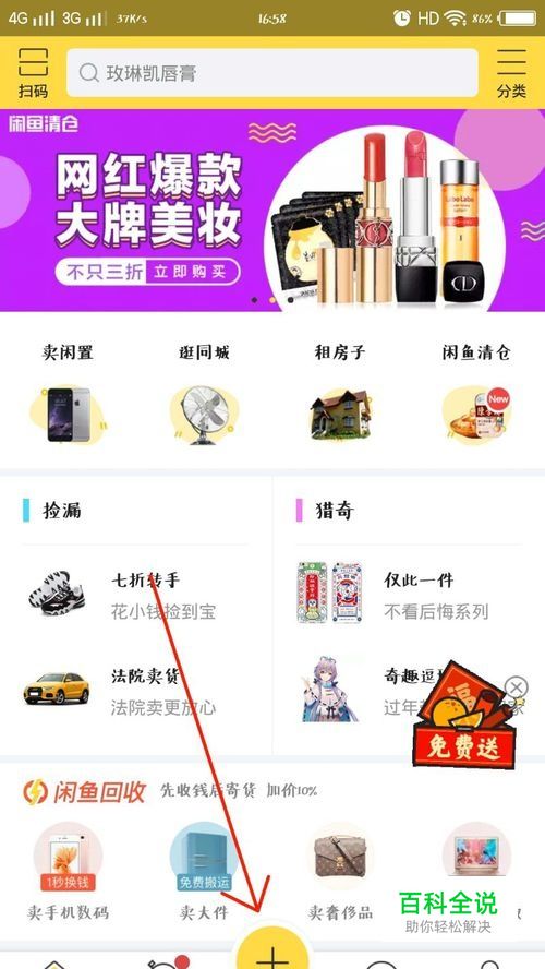 首先打开闲鱼,主页面如图所示,点击最下方中间的加号。