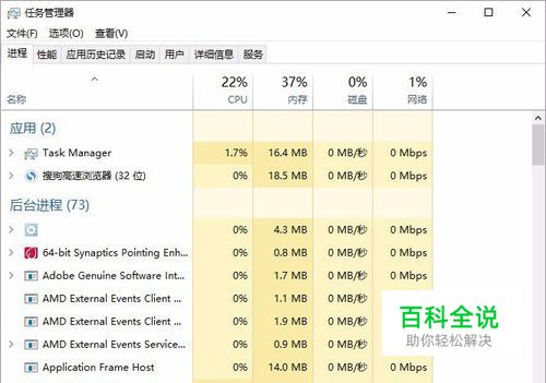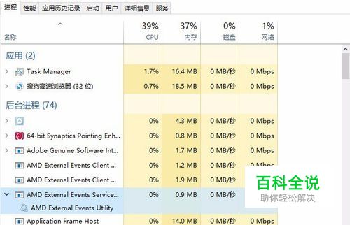 看看任务管理器中有哪些应用和后台进程在运行,看看是不是有一个 AMD External Events Services,这个后台进程其实是一个服务项,如图