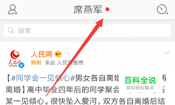 我们打开微博首页,然后点击页面正上方中央的自己的网名,如图所示