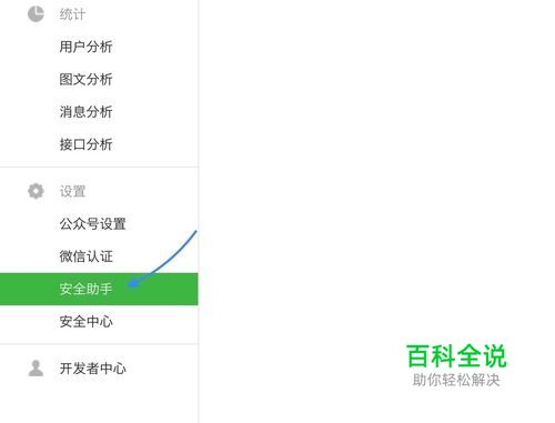 首先请在电脑上登录自己的微信公众号,点击页面左下方的 “安全助手”栏目,如图所示